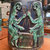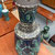 De lampvoet is van keramiek en heeft mooie groene en blauwe kleuren.